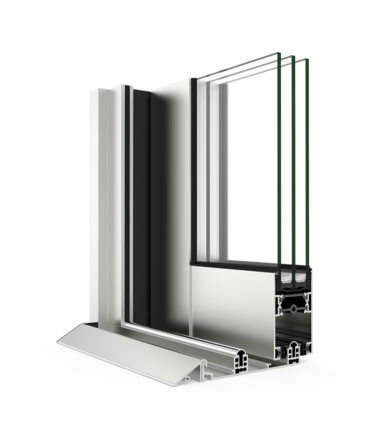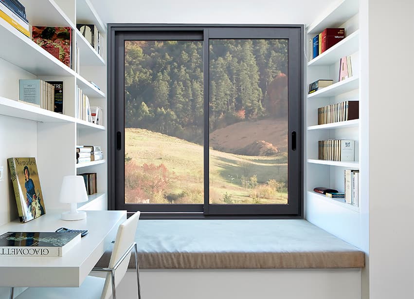 Ventana corredera estándar con prestaciones de abisagrada. Ofrece un gran aislamiento térmico y acústico favorecido por una capacidad de acristalamiento de hasta 36 mm y una rotura de puente térmico de 34 mm. Presenta nudo central de 35 mm y líneas rectas, permitiendo el cruce de hojas gracias a la manilla integrada con cierre multipunto.